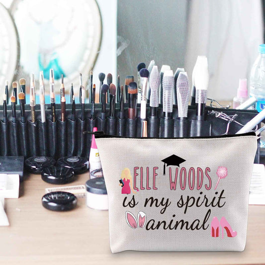POFULL Movie Inspired Gift Law Student Makeup Bag Elle is My Spirit Animal Cosmetic Bag Attorney Gift (Woods is My Spirit Animal bag)