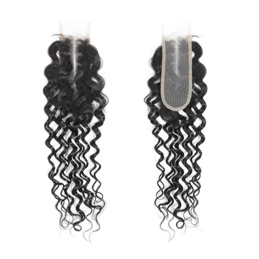 MOMOSHERO 2x6 Water Wave Lace Closure 100% Unprocessed Human Hair, 12A Remy Natural Black Color Pre-Plucked Hairline Wet and Wavy Curly Closure Deep Middle Part With Baby Hair for Women 16 inch