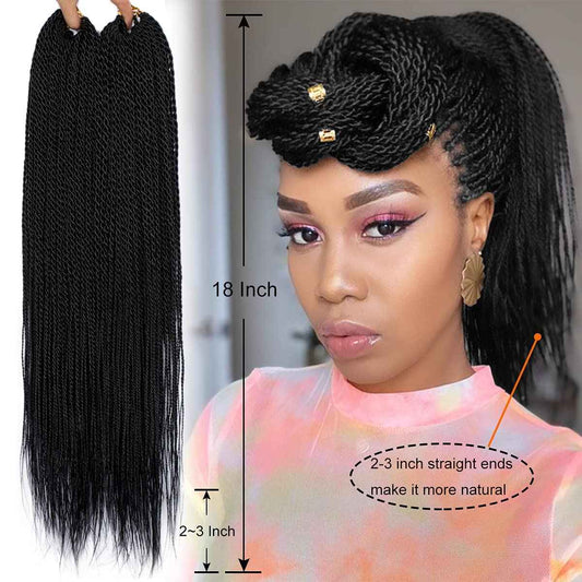 NAYOO Senegalese Twist Crochet Hair For Black Women - 8 Packs 35 Strands/Pack Small Twist Crochet Braids Hair Hot Water Setting, Crochet Braiding Hair Straight Ends(18 Inch, 1B)