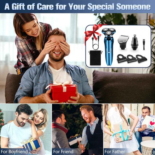 Electric Razor for Men, Men's Rotary Shavers, Waterproof,Wet and Dry Rechargeable Electric Shaver for Men's Faces with a Cordless and Floating Head, Portable Travel Razor,an Ideal Gift for Men