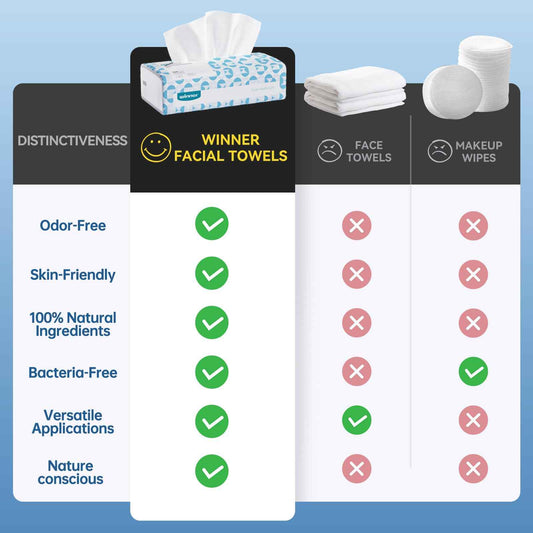 Winner Soft Face Towels, 100% USDA Biobased Facial Towels, Unscented Cotton Tissues for Sensitive Skin, OEKO-TEX Certified Face Towelettes Disposable, Makeup Remover Dry Wipes, 600 Ct, Pack of 6