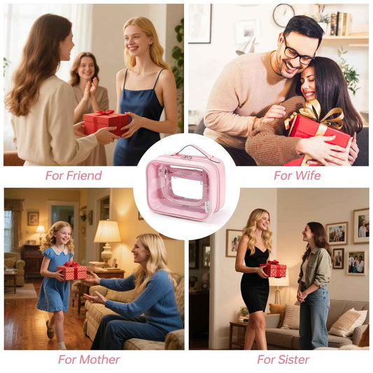 GEMIU Clear Makeup Bag Toiletry Bag for Women 4 Compartments Travel Cosmetic Case Large Capacity Waterproof Skincare Pouch Organizers with Zippe Deep Pink
