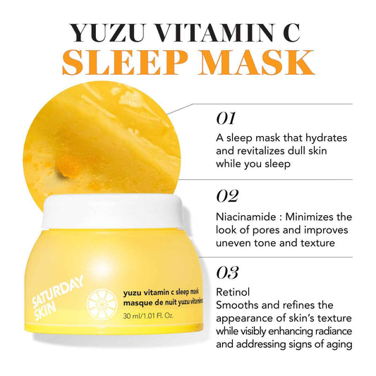 Saturday Skin 3-Piece Skin Care Set Yuzu Vitamin C Sleep Mask Yuzu Vitamin C Bright Toner and Eye Cream Overnight Facial Masks Korean Beauty Best Vitamin C Skincare Set
