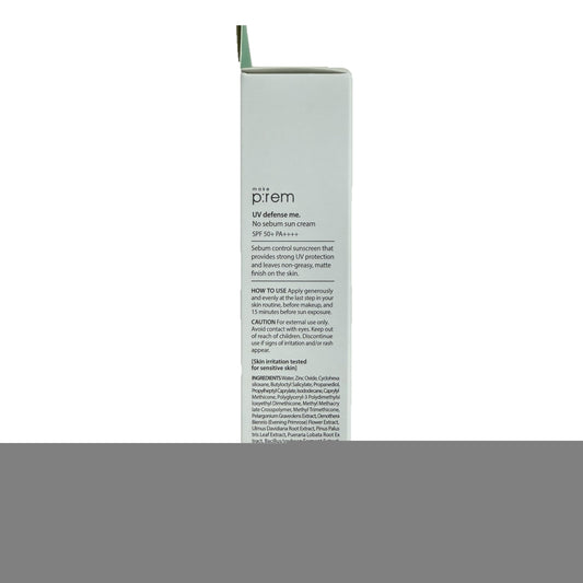 MAKE P:REM UV Defence me. No Sebum Sunscreen, SPF 50+ PA++++ Reef-Safe Silky Texture with Poreless and Matte Finish, UVA/UVB Protection, Korean Sunscreen, 1.69 fl. oz. (50ml)