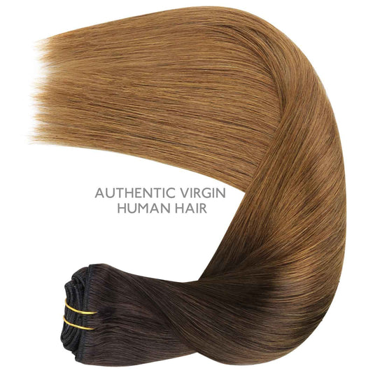 WENNALIFE Clip in Hair Extensions Real Human Hair, 12 Inch 80g 7pcs Remy Hair, Ombre Dark Brown to Light Chestnut Brown Straight Natural Extensiones De Cabello Humano Con Clip Ins