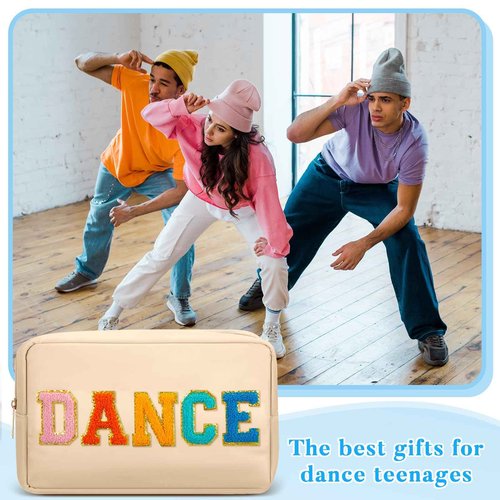 Clysee 6 Pcs Dance Makeup Bag Cosmetic Bag with Chenille Letter Patches Waterproof Portable Cheerleader Toiletry Zipper Pouch for Girl Women Appreciation (Pastel Colors)