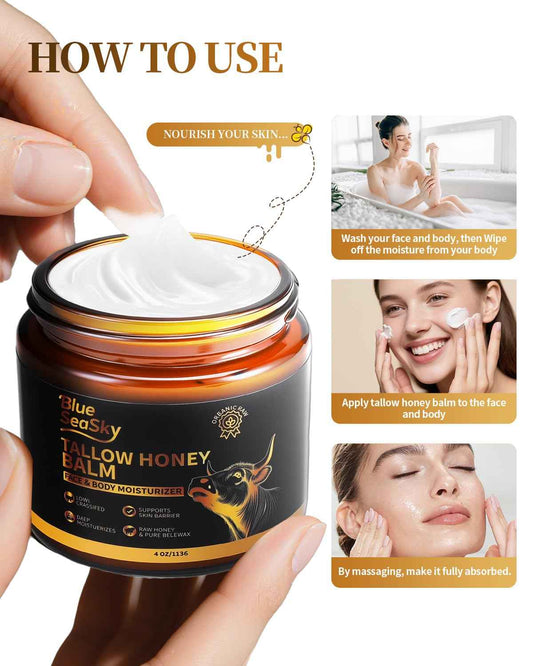 Upgraded Beef Tallow for Skin Handmade Whipped Organic Grass-Fed Tallow Balm with Raw Wild Honey for Eczema & Rosacea,Non-Comedogenic Face,Body Moisturizer for Dry, Sensitive Skin - 4oz Unscented