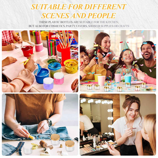 Patelai 48 Pack 6 oz Clear Plastic Jars with Gold Lids Empty Containers Round Clear Plastic Jars Wide-mouth Refillable Storage Organizers for Cosmetics Lotions Butters Slime Making and Food Storage