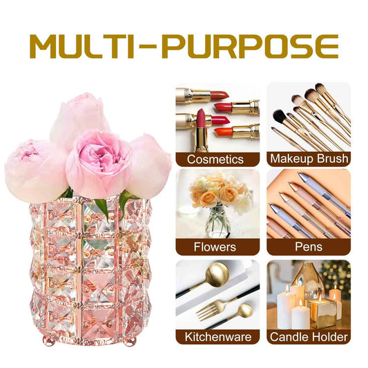 XB'ANG Flower Pattern Makeup Brush Holder Organizer Crystal Cosmetic Cup Eyeliners Eyebrow Pencil Storage Box Container Vanity Decor Accessories (Rose Gold)