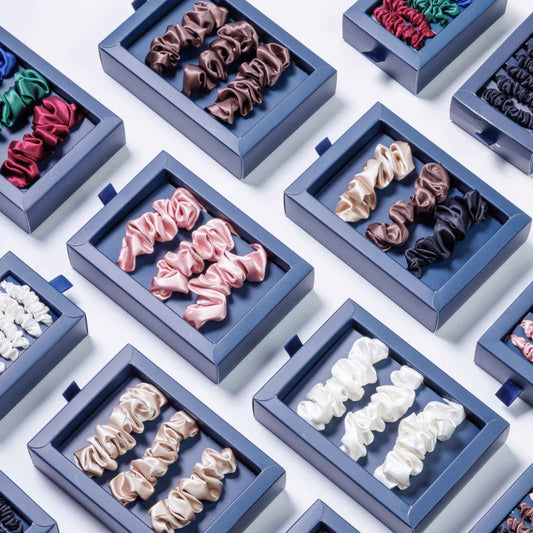 Fishers Finery 25 Momme Pure Mulberry Silk Large Scrunchies - Hair Tie Set, Gentle and Prevents Breakage (Taupe|Chocolate|Black- 3 PK)