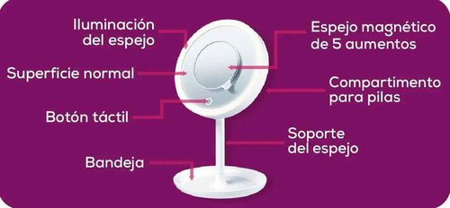 Beurer Illuminated 5X Vanity and Cosmetics Mirror, Touch Sensor Surface, Storage Tray, with Portable, Magnetic Magnifying Makeup Mirror, White LED Light and Dimmer, Cordless, 360° Rotation, BS45