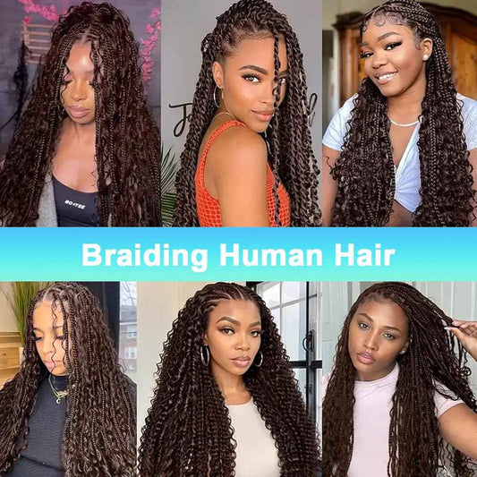Human Braiding Hair 1B Deep Wave Boho Bulk Human Hair for Braiding Knotless 110g 18 Inch Curly Boho Braids Human Hair 12A Wet and Wavy Bohemian 2 No Weft Bundles/Pack Curly Braids Natural Color
