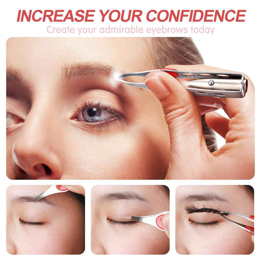 Tatuo 6 Pcs Light Stainless Steel Tweezers with LED, Makeup Eyelash Eyebrow Hair Removal Illuminating Lighted Tweezers for Precision Men Women(Red, Purple, Dark Blue)