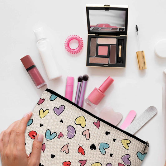 GREOXG Heart Makeup Bag, Small Travel Cosmetic Bag with Zipper, Cute Makeup Pouch Gift Ideas for Women Teen Girls Friends Mom Sisters Teacher Birthday Christmas Wedding Graduation-E23