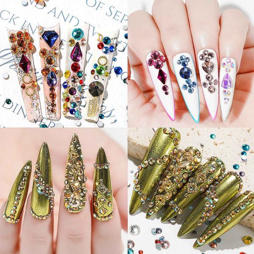 8200 Pcs AB Red Blue Green Champagne Gold Black Yellow Nail Rhinestones Mixed Colored Multi Shaped Sized Nail Beads Glass Gems Stones Rhinestone for Nails Art DIY Crafts Jewelry