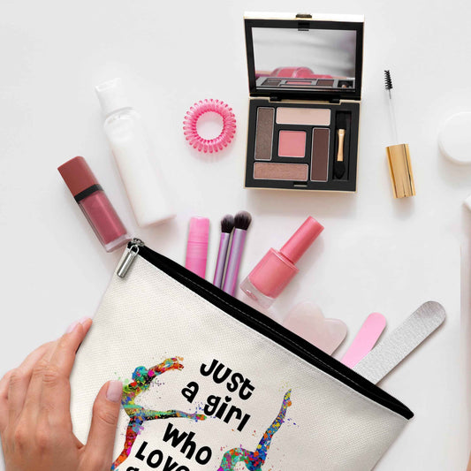 GREOXG Gymnastics Gifts, Just A Girl Who Loves Gymnastics, Gymnastics Travel Makeup Bag, Birthday Gifts for Woman Girls Sisters Mom Daughter Toiletries Organizer-D35