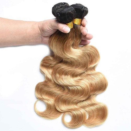 1B27 Human Hair Bundles Ombre Body Wave Bundles Unprocessed Virgin Mixed Length 12 14 16 Inch 2 Tone Black and Blonde Bundle Hair Extensions