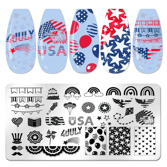 JERCLITY 6pcs 4th of July Nail Stamping Plates Independence Day Nail Stamping Kit Patriotic American Flag Star Statue of Liberty Image Plates Nail Art Design Template Print Nail Stamper Kit for Women