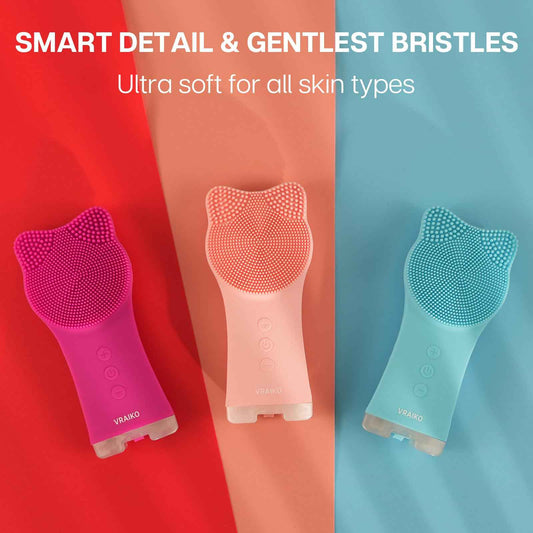 VRAIKO MIA Facial Cleansing Brush, Waterproof Rechargeable Face Cleansing Brush, with Soft Silicone and Adjustable Sonic Vibration, for Deep Cleansing Gentle Exfoliating and Massaging (Blue)