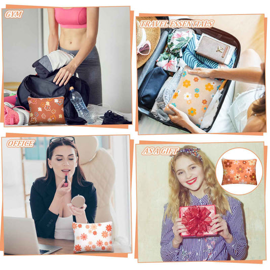 Kajaia 12 Pcs Daisy Floral Makeup Bags, Boho Zipper Cosmetic Pouch for Woman, Cosmetic Toiletry Bags Gifts Cute Portable Travel Purse Organizer Storage Pouch Daisy Party Favors for Autumn Thanksgiving