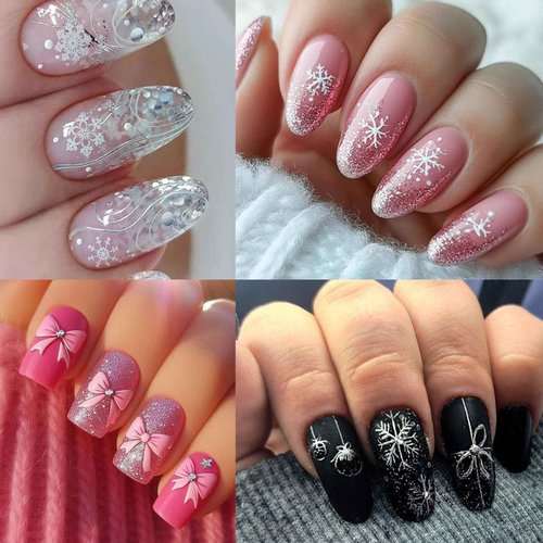 6Sheets Christmas Nail Art Stickers Snowflake Christmas Tree Nail Decals with Colorful Snowflake Pink Xmas Tree Snowball Firework Bow Nail Design DIY Christmas Nail Supplies Nail Decor for Women Girls