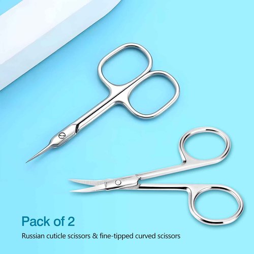 2 Pack Cuticle Scissors and Grooming Scissors Extra Fine for Manicure and Pedicure, Curved Blade Precise Pointed Tip Grooming Kit for Eyebrow, Eyelash, Trim Nail and Dry Skin