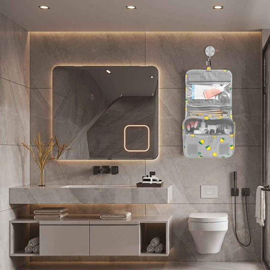 LAKIBOLE Travel Essentials Organizer Bag for Women Toiletry Bag Hanging Multifunction Cosmetic Bag Portable Makeup Pouch Waterproof (Grey & Lemon)