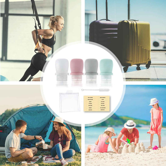RILYSUN Silicone Travel Bottles Set for Toiletries, Leak Proof Refillable Squeezable Containers, Travel Containers 38ml(1.3oz) for Shampoo Conditioner Lotion Liquids, with Storage Bag Tag