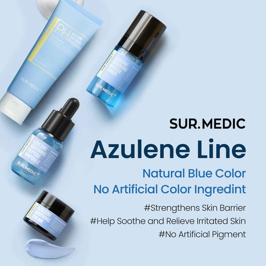 SURMEDIC AZULENE Soothing Trial Kit, Korean Skincare, Airplane-Friendly Travel Size Mini Set, Facitl Kit Gift for Women with Moisturizer, Cleanser, Toner, Ampoule, Cream