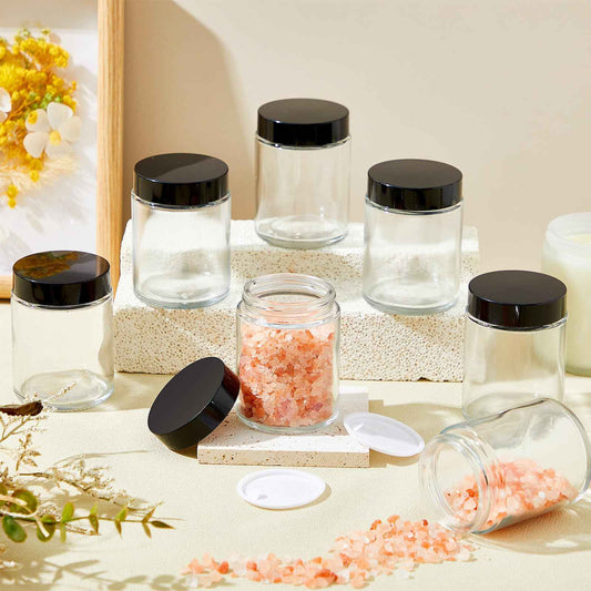 Domensi 24 Pcs 6oz Glass Jars with Lids Leakproof Round Airtight Empty Cosmetic Jars with Inner Liners Lid for Storing Lotions Spices Ointments Candle Making Food Storage (White Black)