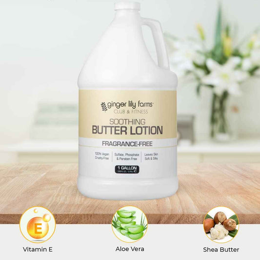 Ginger Lily Farms Club & Fitness Soothing Butter Lotion for Dry Skin, 100% Vegan & Cruelty-Free, Fragrance Free, 1 Gallon (128 fl oz) Refill