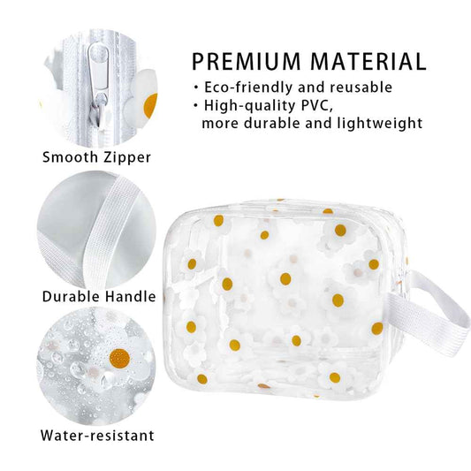 TotePrint Clear Daisy Printed Cosmetic Bag and Travel Pouch 9.4''x6.69''x3.5'' with Handle-Durable PVC Material,Versatile,Zipper Design for Smooth Sliding-Ideal for Makeup (White Floral#2-M)