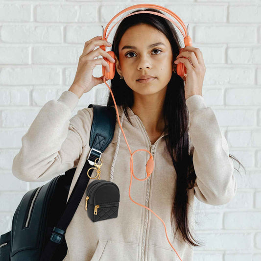 4 Pcs Mini Backpack Cosmetic Bag Keychain PU Leather Lipstick Holder Cute Case Coin Purse Wallet Card Holder Data Cable Organizer Zipper Pouch Portable Travel Storage Bag for Women