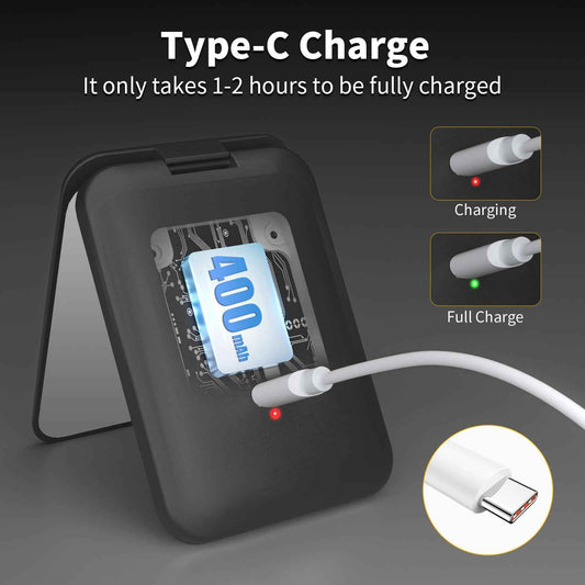 Kintion 2025 Pocket Mirror, Rechargeable Dimmable 3 Color Lighting 1X/3X LED Compact Travel Makeup Mirror for Purse, Portable, Folding, Handheld, Small Lighted Mirror for Women Gift, Black