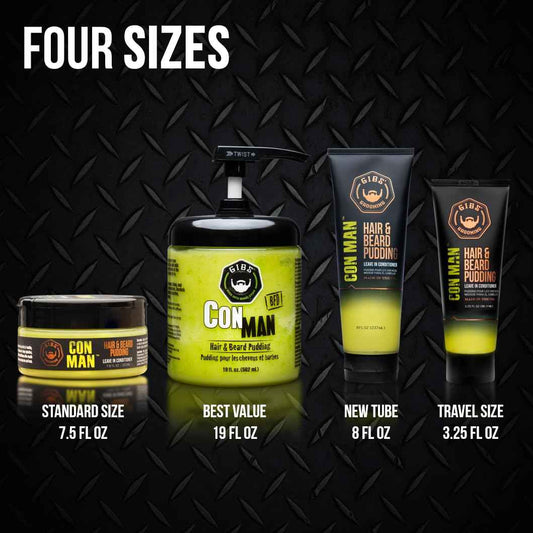 GIBS Con Man Hair & Beard Pudding - Leave In Conditioner - Curl Definer - Moisturizer - 8 oz Squeeze Tube