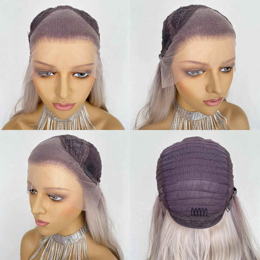 CIMITIKI Highlight Ash Blonde with Brown Colored 13x4 Lace Front Wig Ready to Wear HD Glueless 18Inch Body Wave Pre plucked Natural Hairline for Women