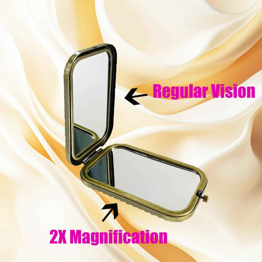 Astratool 2PCS Compact Mirror Vintage Mirror Pocket Mirror Purse Mirror, Regular and 2X Magnification Vintage Gold Mirror Hand Mirror (Size B)