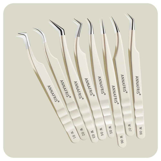 ANNAFRIS Lash Tweezers for Eyelash Extensions,Precision Fiber Tip for Volume Eyelash Extension,Lash Extension Tweezers for Easy Application and Removal (White, 1PC-08)