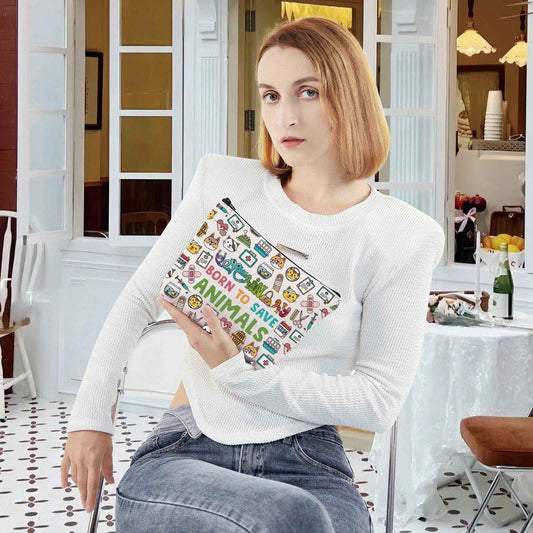 LEVLO Veterinarian Cosmetic Make Up Bag Veterinary Technician Gift Born To Save Animals Makeup Zipper Pouch Bag For Veterinarian Assistant Student (Save Animals F Bag)