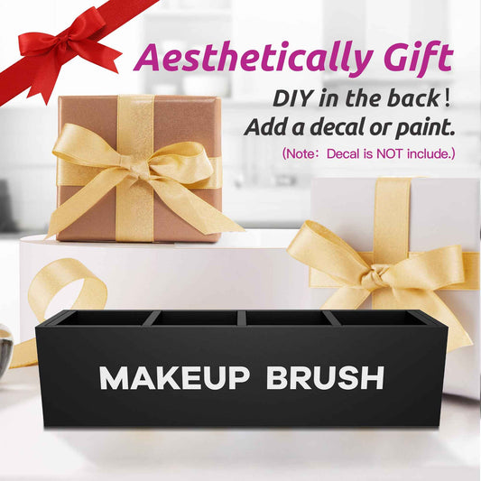 Suli Large Makeup Brush Holder Organizer, Wooden Cosmetic Brushes Storage with 4 Slots, Eyeliners Display Case for Vanity Desktop Bathroom Countertop -Black