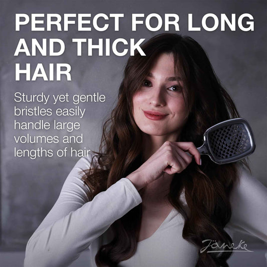 Janeke Superbrush Detangling Brush for Soft Smoothing Hair Brushing with Anti-Static Bristles - Vented Wet Hair Brush for Blow Drying Use - Perfect for Curly, Thick, Wavy, Fine Hair Types (Silver)
