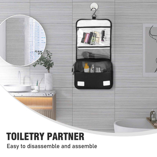 Playexen Hanging Travel Toiletry Bag, Portable Travel Cosmetic Organizer Bag for Women Men, Waterproof Toiletries Wash Bag with 4 Compartments & Hanging Hook (Black)