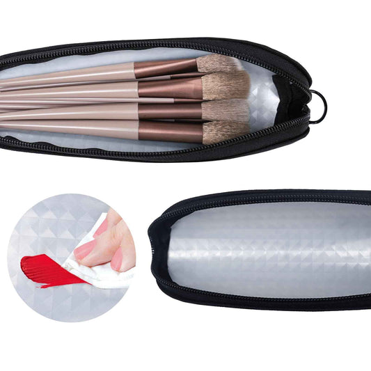 Aosbos Small Makeup Brush Holder Bag, 8.0 x 2.6 IN, Travel Cosmetic Pouch Organizer for Make Up Brush Traveling Case, Black Multi-Functional Pouch