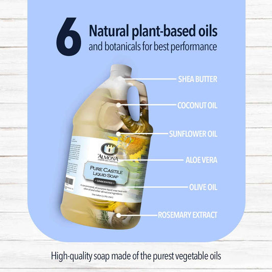 La Almona - Pure Castile Liquid Soap, UNSCENTED, 1 Gallon - Multipurpose: Hands, Face, Body, Laundry, Dishes & More - For Sensitive Skin, All-Natural Ingredients, Fragrance Free