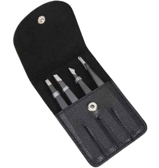 ITALLY Tweezers Set - Professional Eyebrow Tweezers - Stainless Steel Best Precision Tweezers for Women Facial Hair, Splinter, Blackhead & Ingrown Hair Removal, 4Pcs (Black)