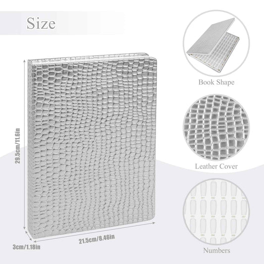 216 Colors Nail Display Chart, Nail Gel Polish Organizer Color Card with 240 False Nail Tips, Nail Color Display Book Chart Salon Nail Supplies Sample Chart Tool Set Nail Swatch (Silver, 2 Pack)