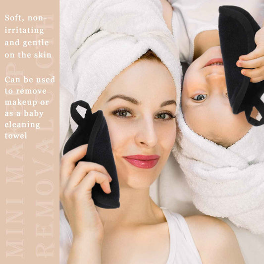 Queekay 48 Pcs Makeup Remover Cloths Reusable Washable Remover Pads Soft Microfiber Washcloths Facial Cloths Makeup Towels Holiday Gift for Women, 5 x 5 Inch(Black)