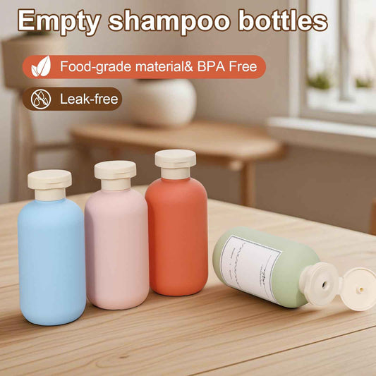 ASEVAT 6.7oz Plastic Refillable Travel Shampoo Bottles, 4 Pack, Leak Proof, Reusable, Orange/Pink/Green/Blue, Travel Size, Shampoo and Conditioner Dispenser