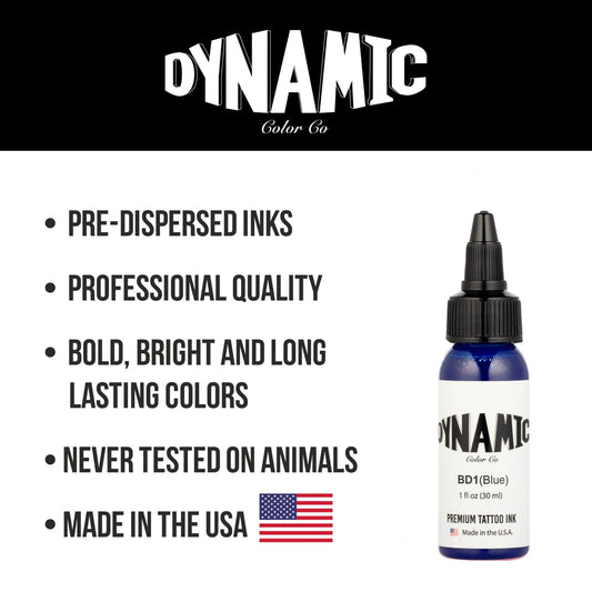 Dynamic Color Co Blue Tattoo Ink (1oz Bottle): Vibrant, Sterilized, Vegan & USA-Made Since 1990 – Trusted by Artists Worldwide