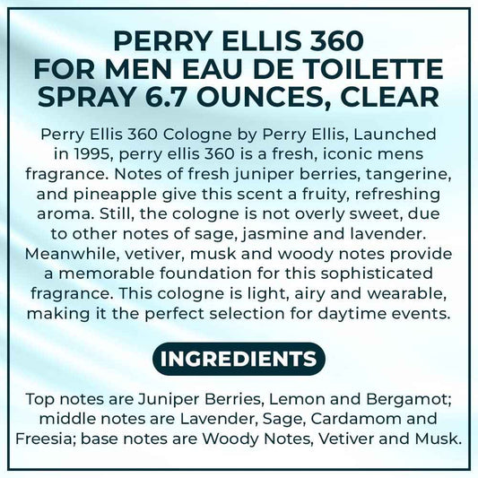 Perry Ellis 360 For Men Eau De Toilette Spray 6.7 Ounces, clear